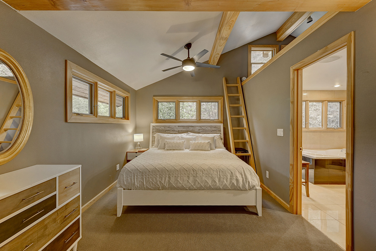 • Master bedroom in the A-Chalet house for rent on the grounds of the A-Lodge Boulder hotel